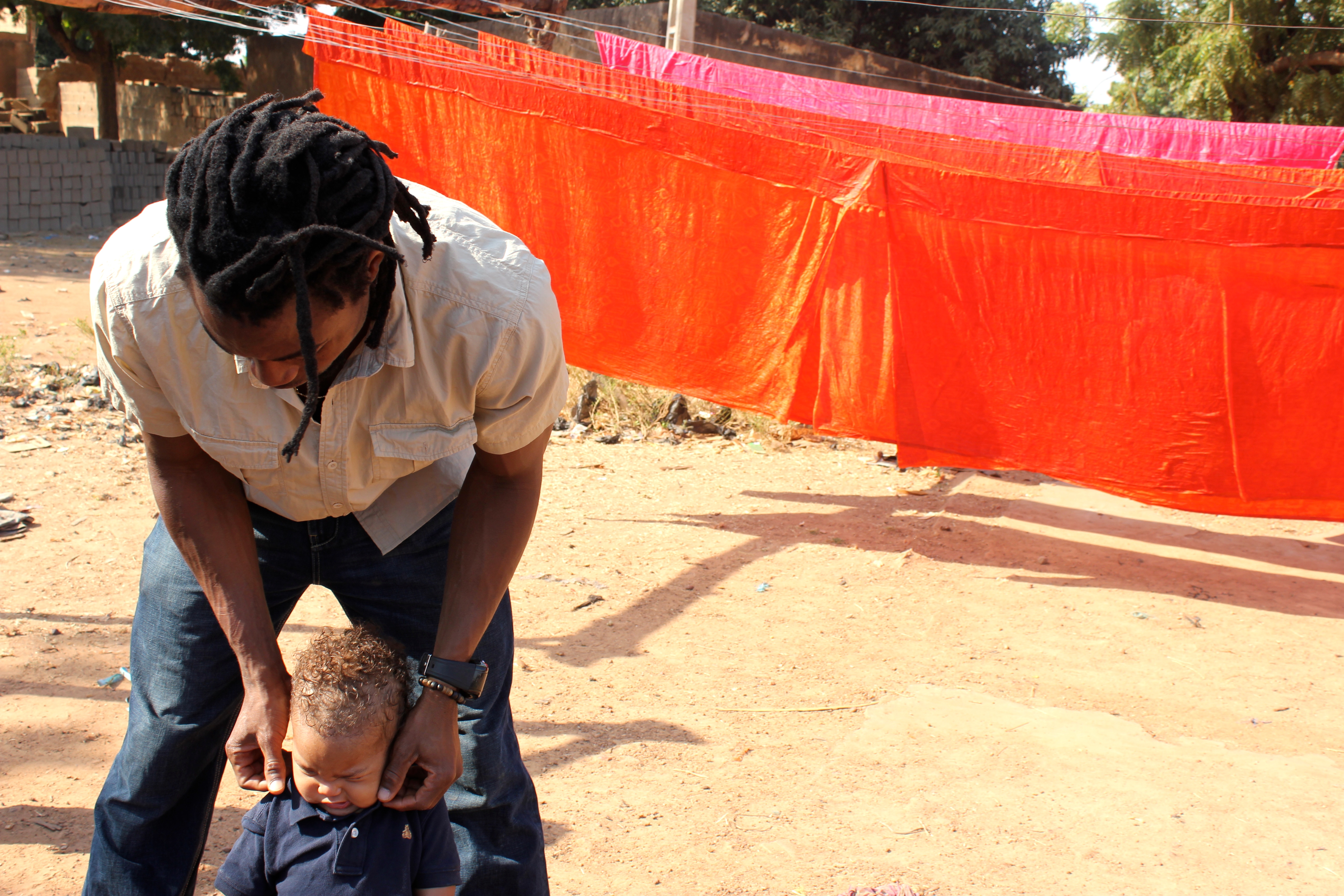 I hadn’t been to a bazin atelier previously, though I’d seen the flags of fabric clipped to clotheslines and flapping in the breeze from afar. A friend asked me to take a few family photos at just such a spot; It was a brilliant idea, and played beautifully in photographs. Here are a a few, mostly from the “B-roll.”