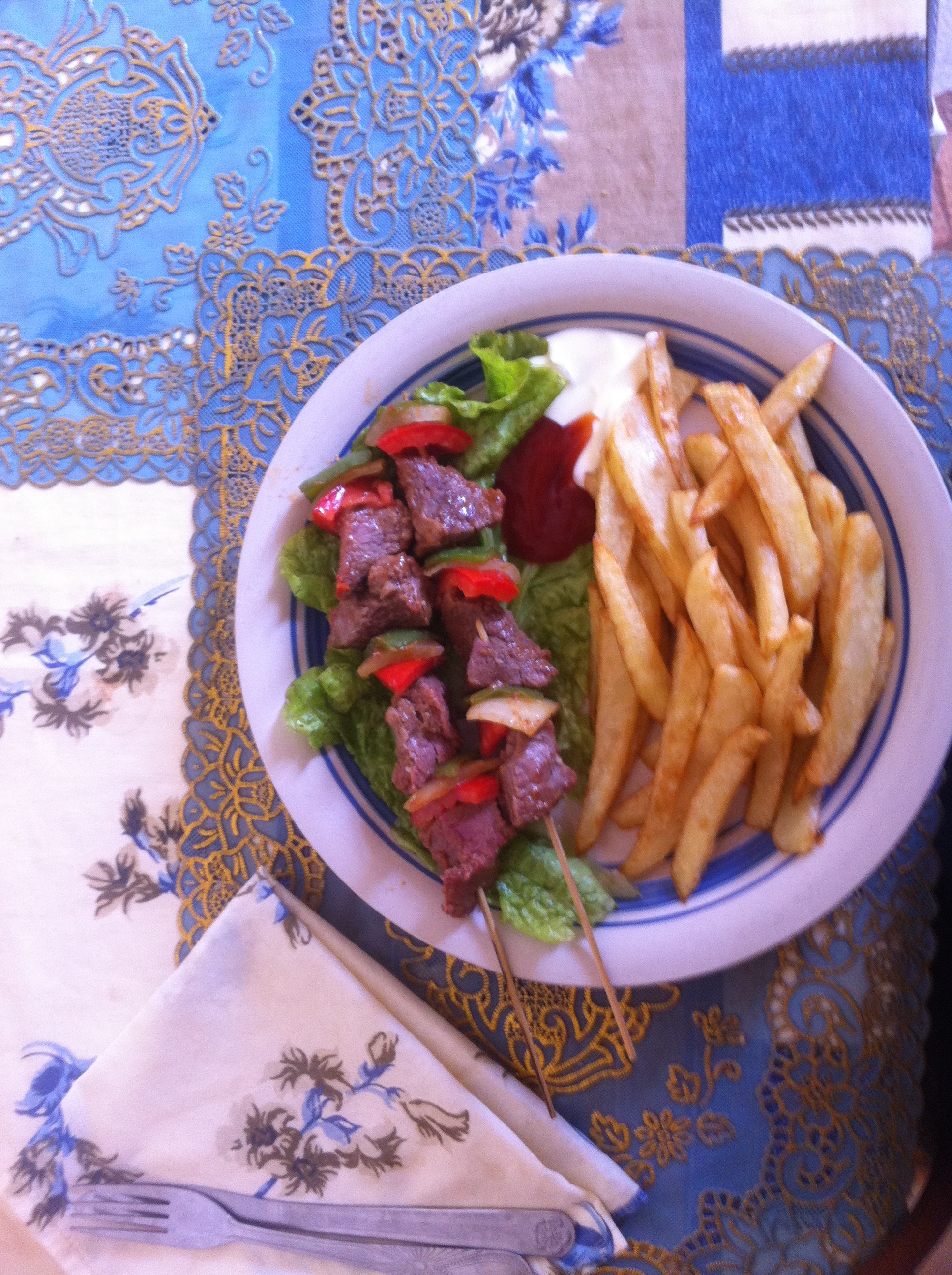 Eats & Drinks, Mali Published on January 18, 2015 Leave a Comment what’s to eat #21 written by erinwrote A late breakfast in Sevare, Mali, where I escaped to for the holidays this year: a Malian standard, the brochette plate. Share this: Click to share on Facebook (Opens in new window) Facebook Click to share on Pinterest (Opens in new window) Pinterest Click to email a link to a friend (Opens in new window) Email Click to share on X (Opens in new window) X Click to share on Tumblr (Opens in new window) Tumblr More Click to print (Opens in new window) Print Like Loading... Related