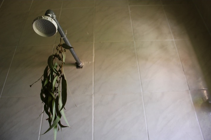 In the bathroom, a bit of the eucalyptus that line the roads of Hargeisa, for visual and olfactory effect.