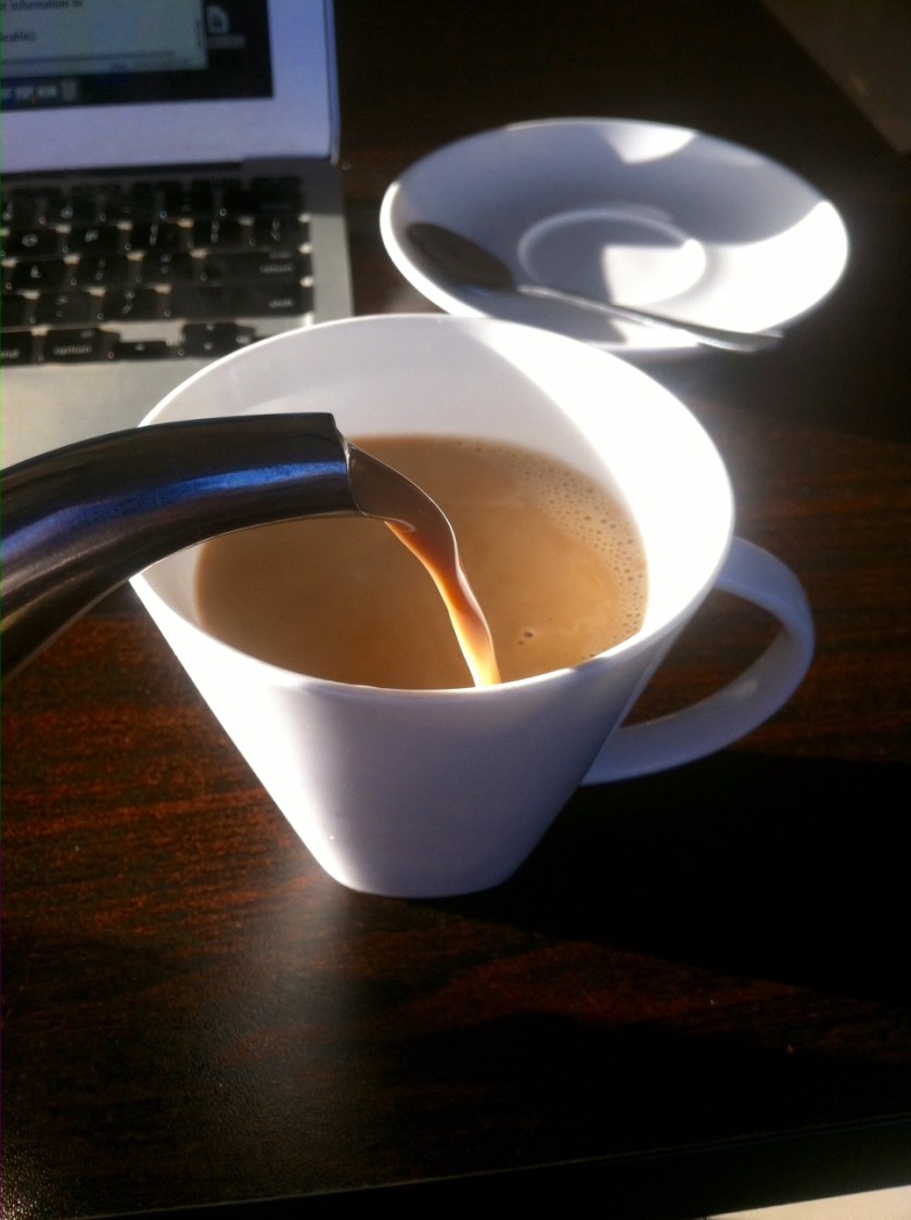 Somali tea, reminiscent of chai. Prepared with milk and spices, and served in a teapot.