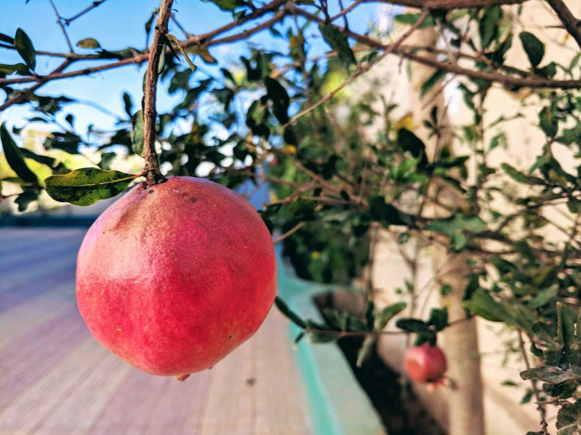 I’ll admit pomegranate scones seem incongruous, like a peacock in the bathtub, but with some zest from oranges and mandarins (provenance: desert oases in Awdal Region of Somaliland) the tart pomegranate works. Did you know that winter is pomegranate season? (You probably did, you smarty-pants). At least in the northern hemisphere, that’s the case. The gems around our home had been looking awfully plump and crimson on their branches lately, despite dry and chilly weather. I just assumed they were in a good mood for whatever reason, but it turns out they, like me, get rosy cheeks from the brisk air!