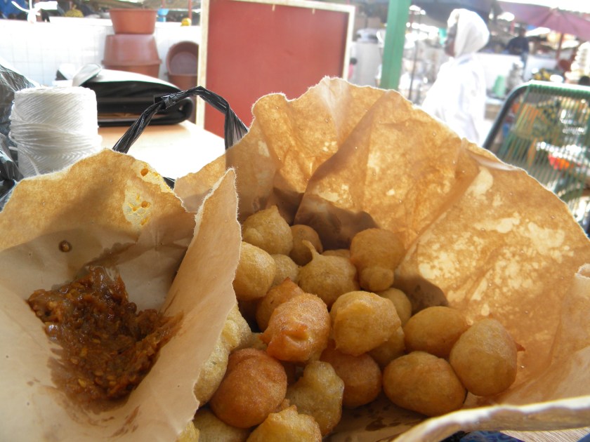 In my estimation, fadiirad is, ethnocentrically speaking, the local equivalent of a Tex-Mex burrito bowl, eaten from an aluminum take-away box on the street. The base of it, literally and figuratively, is a grilled bread called sabaayad, according to The Googles it’s similar to India’s paratha – a flat, flaky, oily, simple combination of flour, water, salt.